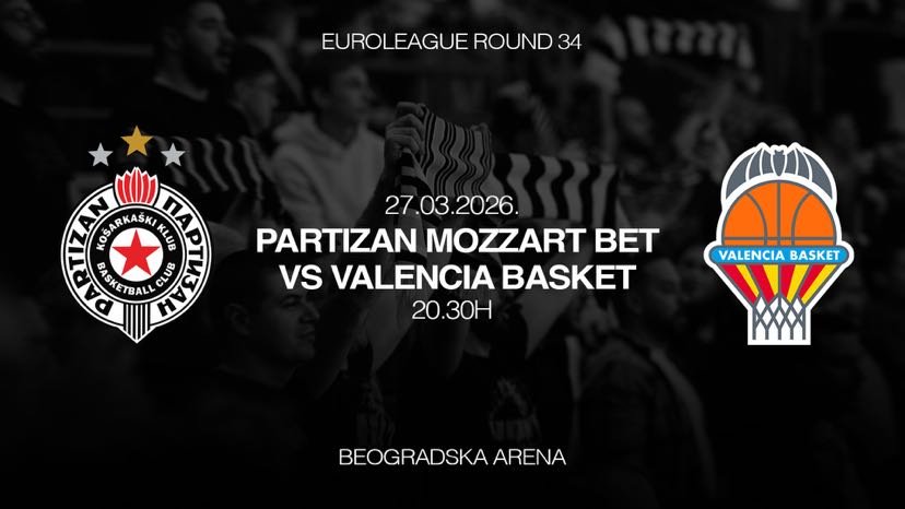U petak 27. marta od 20:30 časova u Beogradskoj Areni odigraće se utakmica 34. kola Evrolige u kojoj Partizan Mozzart Bet dočekuje Valencia Basket.